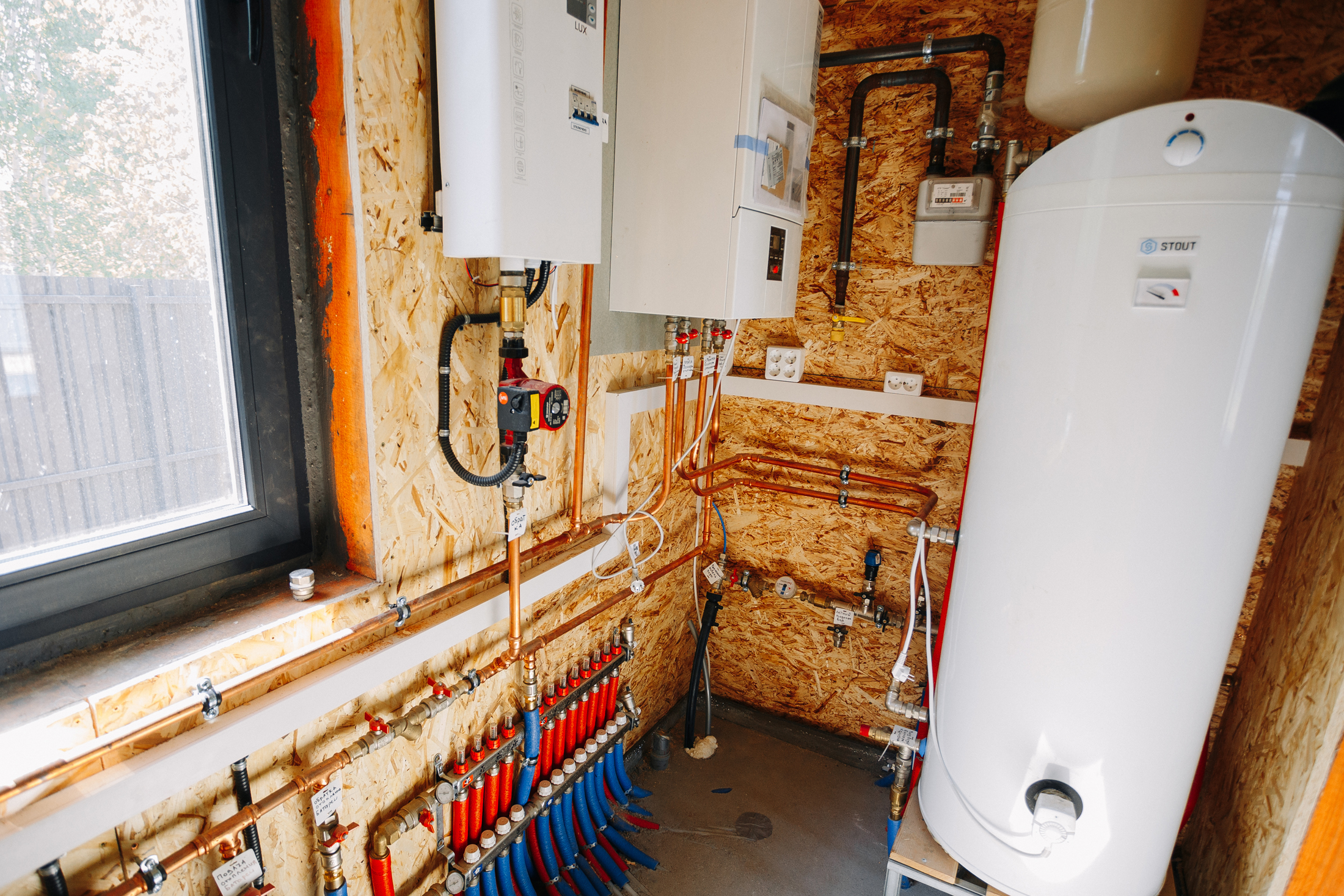 На этом этапе в доме монтируется система отопления и водоснабжения, электрика, вентиляция, слаботочные системы. Также дом подключается к сетям: водопровод, электричество, газ, устанавливается септик